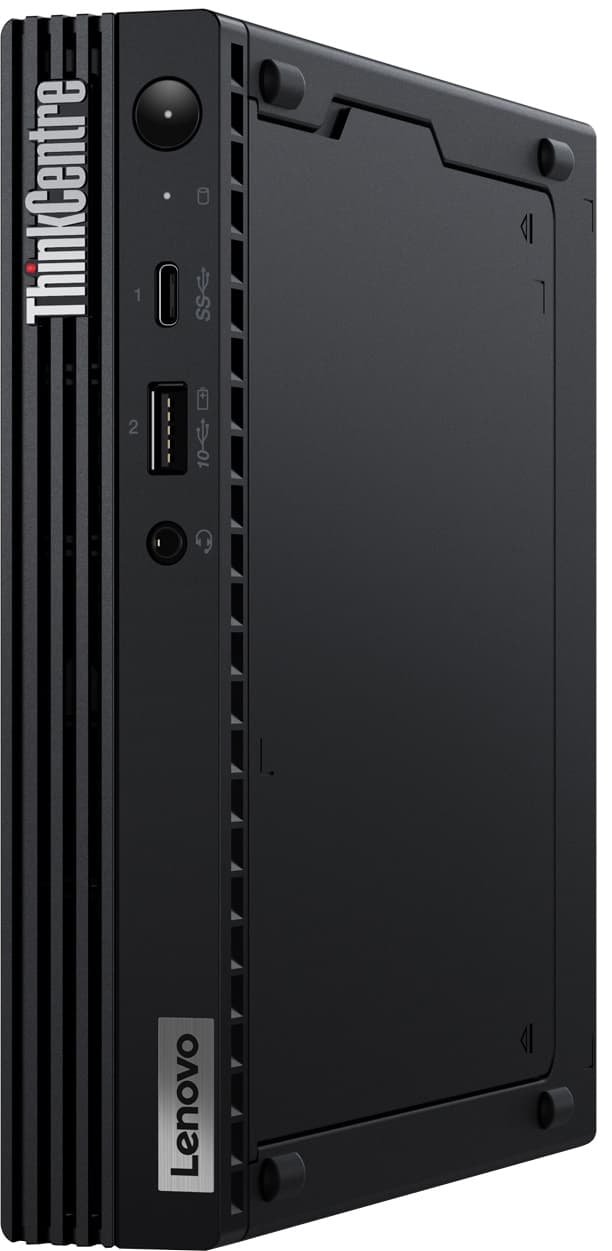 Vain hieman kirjaa suurempi ThinkCentre M70q Gen 2 Tiny (Intel) ‑pöytätietokone on helppo ottaa käyttöön missä tahansa, ja sen valinnainen ThinkCentre-pystyjalusta tarjoaa lisätukea, olipa sijaintisi mikä tahansa. Saatavana on useita asennussarjoja, tai voit myös vain jättää sen hyllylle tai työpöydälle vaaka- tai pystyasentoon. Sen moderni, Raven Black ‑värinen runko näyttää hyvältä missä tahansa.