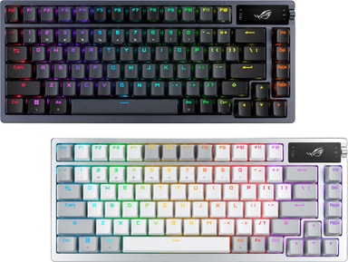 Asus ROG Azoth -näppäimistö tuo pelaamiseen ammattimaisuutta. Vaihdettavien mekaanisten kytkimien, 3-suuntaisen liitettävyyden, OLED-näytön, RGB-valaistuksen, 2000 tunnin akkukeston ja muiden ominaisuuksien ansiosta taitosi pääsevät loistamaan.Tutustu ominaisuuksiin