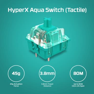 HyperX Alloy Origins Aqua Switch -pelinäppäimistössä on mekaaniset HyperX Aqua -kytkimet, kestävät PBT-näppäinhatut, irrotettava USB-C-liitäntä, lentokonetason alumiinirunko, RGB-valaistus ja NGENUITY-ohjelmiston avulla tapahtuva mukautus.Tutustu ominaisuuksiin