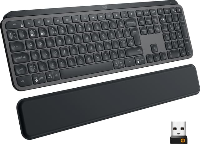 Langaton Logitech MX Keys Plus -näppäimistö voidaan yhdistää useisiin laitteisiin Unifying-USB-vastaanottimen tai Bluetooth-yhteyden avulla. Näppäimistössä on ergonomiset taustavalaistut näppäimet ja irrotettava rannetuki.Tutustu ominaisuuksiin