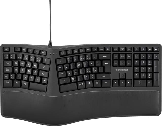 Langallinen, ergonominen ja täysikokoinen Sandstrøm-näppäimistö halkaistulla muotoilulla ja rannetuella pitää kätesi luonnollisessa asennossa ja vähentää ranteisiisi sekä käsivarsiisi kohdistuvaa rasitusta.Tutustu ominaisuuksiin