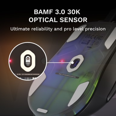 Tätä hiirtä ohjaa BAMF 3.0 -optinen sensori, joka tarjoaa ammattilaistason tarkkuuden. Se tukee jopa 30 000 DPI -herkkyyttä, 750 IPS -seurantanopeutta ja 50 G -kiihtyvyyttä, joten jokainen nopea ranneliike tallentuu pikselintarkasti.