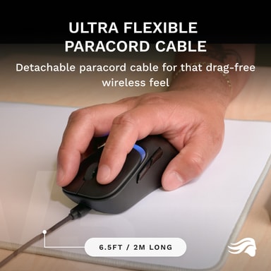 Glorious Model D3 Wired hyödyntää nopeaa USB-yhteyttä, jossa on 1 000 Hz -kyselytaajuus ja 1 ms vasteaika. Mukana on ultrajoustava 2 m irrotettava paracord-kaapeli, joka poistaa vedon ja tarjoaa lähes langattoman tuntuman langallisen yhteyden luotettavuudella.