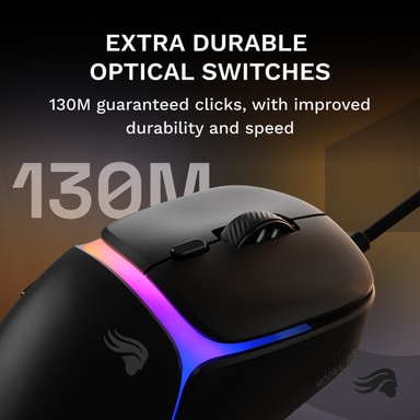 Hiiren monialueinen, kirkas RGB-valaistus hehkuu kuultavan pinnan läpi kiinteän kuoren alla. Voit selata kahdeksaa esiasetettua tehostetta hiiren pikanäppäimillä tai käyttää Glorious CORE -ohjelmistoa avataaksesi koko väripaletin ja synkronoidaksesi valaistuksen kokoonpanosi kanssa.