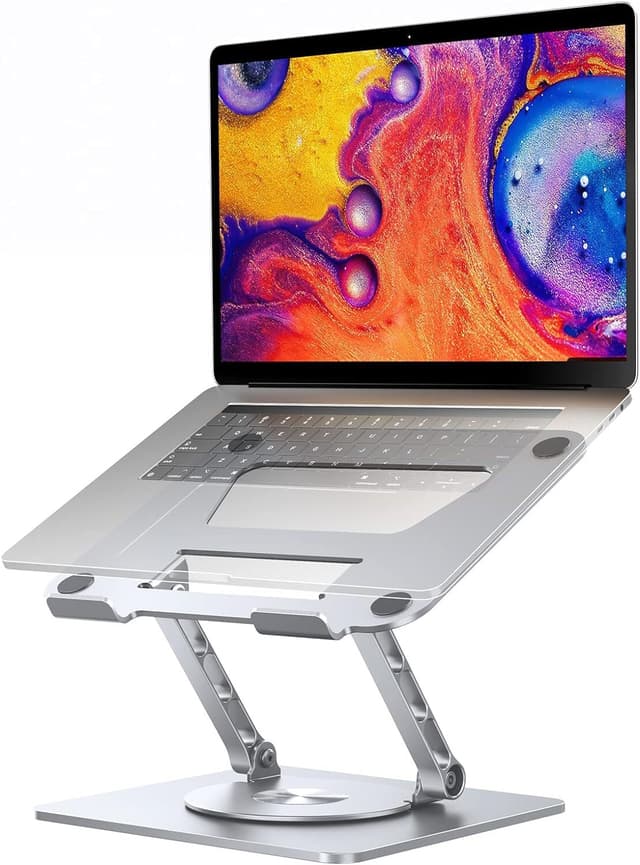 Kannettavan tietokoneen teline on säädettävä ja 360 astetta käännettävissä, löydät käyttömukavuuden kulman ja korkeuden, mikä voi parantaa kehon asentoa ja lievittää niska-, selkä- ja silmien rasitusta. Taitettava muotoilu, helppo kuljettaa mukanasi. Sopii kannettavalle tietokoneelle, jonka koko on 17,3 tuumaa.