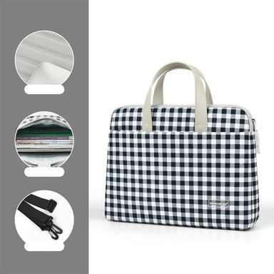 Kevyt ja kannettava: Tämä 15,6 tuuman kannettavan tietokoneen laukku on valmistettu kevyestä nylon- ja oxford-kankaasta, mikä tekee siitä uskomattoman helpon kuljettaa mukana, olitpa sitten työmatkalla, matkoilla tai menossa luokkaan. Ohut muotoilu varmistaa, että se mahtuu mukavasti ylälokeroihin tai istuimien alle. Takana oleva lisätty vaunuhihna mahdollistaa sen kiinnittämisen turvallisesti matkatavaroihisi, mikä tekee lentokenttämatkustamisesta helppoa. Koe vaivattoman kannettavuuden vapaus tällä huolellisesti suunnitellulla kannettavan tietokoneen laukulla, joka on täydellinen nykyaikaiselle ammattilaiselle tai opiskelijalle liikkeellä ollessa. Se on yhteensopiva APPLE:n, Samsungin ja Huawein kaltaisten merkkien kannettavien tietokoneiden kanssa.