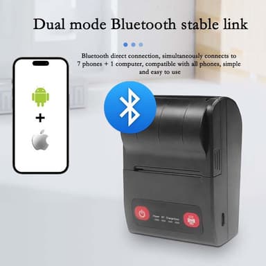 Langaton Bluetooth-tulostus: Poista kaapeleiden aiheuttama vaiva integroidun Bluetooth-yhteyden avulla. Tämä 58 mm:n lämpötulostin yhdistyy saumattomasti älypuhelimeesi, tablettiisi tai kannettavaan tietokoneeseesi, jolloin voit tulostaa langattomasti mistä tahansa kantaman sisällä. Ihanteellinen kuittien, laskujen, tilausvahvistusten ja tarrojen tulostamiseen suoraan mobiililaitteestasi. Bluetooth-yhteys on vakaa ja luotettava, mikä takaa tasaisen suorituskyvyn. Yhteensopiva monenlaisten laitteiden kanssa, mukaan lukien Android-, iOS- ja Windows-käyttöjärjestelmät. Nauti langattoman tulostuksen mukavuudesta ja tehosta työnkulkuasi tällä monipuolisella Bluetooth-lämpötulostimella. USB-yhteys tarjoaa vaihtoehdon laitteille, joissa ei ole Bluetoothia.