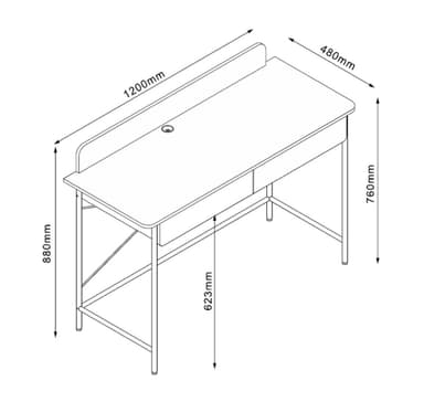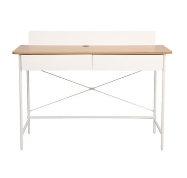 Työpöytä FERDIE 2-laatikolla 120x48xH88cm, tuhka/valkoinen.Materiaali: melamiinilevy.Väri: tuhka/valkoinen.Pöydän jalat ja runko on valmistettu metallista ja viimeistelty valkoisella pulverimaalilla.Tutustu ominaisuuksiin