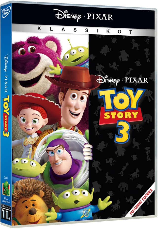 Toy story 3 tuo iloksemme woodyn, buzz lightyearin ja muut toy story -ystävämme, joilla on tällä kertaa seurassaan muitakin leluja – muun muassa teatraalinen herra piikkis, mansikantuoksuinen tuhti-nalle ja hurmaava mutta turhamainen ken. Andy on kasvanut ja lähdössä collegeen, ja woody, buzz, jessie ja muut hänen uskolliset lelunsa miettivät, kuinka heidän nyt käy. Tapahtuu pieni erehdys ja lelut joutuvat vahingossa päiväkoti päivänpaisteeseen ja ovat tuota pikaa huiman, uuden seikkailun pyörteissä! Tämä julkaisu sisältää lelulaatikollisen verran lisämateriaalia ja pixarin uuden lyhytelokuvan päivä ja yö. Toy story 3 vie katsojansa seikkailuun kohti ääretöntä ja sen yli!