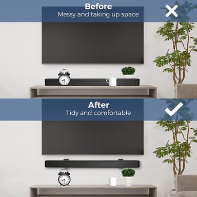 Tilaa säästävä muotoilu: Tämä seinäteline on suunniteltu säästämään tilaa kotiteatterissasi. Asentamalla soundbarin seinälle voit vapauttaa arvokasta pintatilaa TV-tasolle tai huonekaluille.