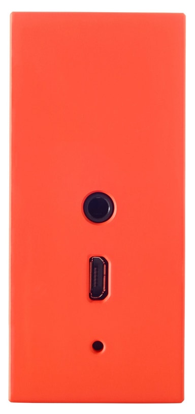 Värikäs oranssi JBL GO kaiutin tuottaa kompaktista koostaan huolimatta vahvan äänen. Uudelleenladattavassa akussa riittää virtaa jopa 5 tunnin toistoon yhdellä latauksella.