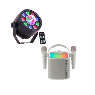 PartyZone-karaokesetti kahdella mikrofonilla (valkoinen) yhdistää tehokkaan äänen, käyttäjäystävällinen teknologia ja elegantti muotoilu. Se on ihanteellinen valinta niille, jotka rakastavat laulamista, naurua ja upeiden muistojen luomista ystävien ja perheen kanssa.