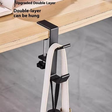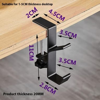 • Desk Edge Hook Reppulaukku Kuulokkeiden ripustin pöydän alle Säilytys - Musta