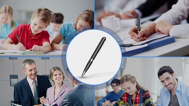 Kynä digitaalisella äänitallentimella tallentaaksesi nopeasti ja helposti kokouksessa tai esityksen aikana sanotun. Voit myös kuunnella tallenteen suoraan mukana olevista kuulokkeista.Tutustu ominaisuuksiin