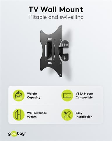 käytännöllinen, tilaa säästävä ratkaisu jopa 30 kg painavien televisioiden asentamiseen täysin joustavasti