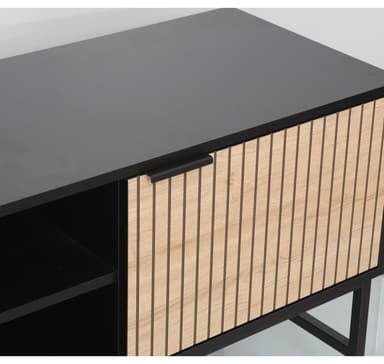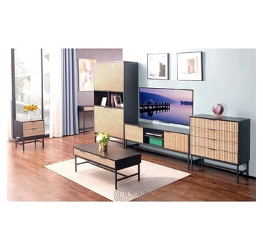 TV-taso HELVE 150x40xK60cm. Materiaali: melamiinilevy. Väri: musta / vaalea puu.Tutustu ominaisuuksiin