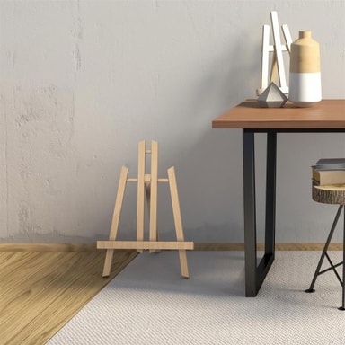 Kolmijalkainen pöytäteline on erityisen ihanteellinen lapsille (esim. päiväkodin tai koulun taideprojekteihin). Se kantaa helposti paareet, maalauskansiot, maalauspalikat ja vaaleat puupaneelit.