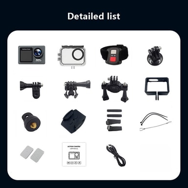 F300AAR-G Action-kamera 24MP 5K Ultra HD 30m vedenpitävä ulkourheilukamera kaukosäätimellä【5K Ultra HD -kaksoisnäytöt】Kaksoisnäytöt edessä ja takana upealla 5K 30FPS ultra HD -videotarkkuudella.Tutustu ominaisuuksiin