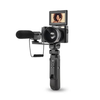 Realishot VLG4K-DIG är idealisk för vloggare eller fotoentusiaster som vill ta det till nästa nivå. Kompakt, kraftfull och mycket lätt att använda, kombinerar den alla tillbehör du behöver för att förenkla användningen: kamera med 16X digital zoom, 4K-video, mikrofon, vidvinkelobjektiv, stativ med externt batteri för att ladda din kamera och en avtagbar fjärrkontroll .