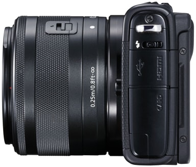 EF-M-objektiiviliitäntä mahdollistaa erilaisten EF-M-objektiivien käytön aina kameran normaalista 22mm objektiivista pitkään 55-200mm zoomiin. Voit myös liittää kameraan Canonin EF-S-objektiiveja käyttämällä adapteria (myydään erikseen).