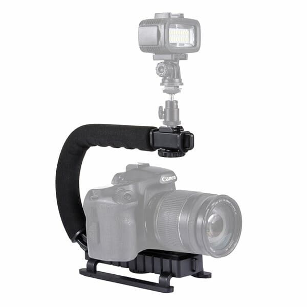 Paranna vakautta kuvaamisen aikana. C-muotoinen rakenne tekee laitteesta käytännöllisemmän. Rakenne mahdollistaa mikrofonin tai salaman asentamisen. Pohjassa on vakio 1/4 liukuruuvi, jolla videokamera voidaan lukita helposti stabilointilaitteeseen. Kahvassa on pehmeää vaahtoa, joka lisää mukavuutta.
