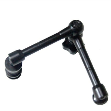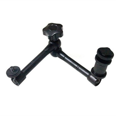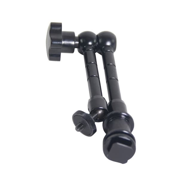 Säädettävät kuulanivelet molemmissa päissä, Hotshoe toisessa päässä ja 1/4 ruuvi toisessa