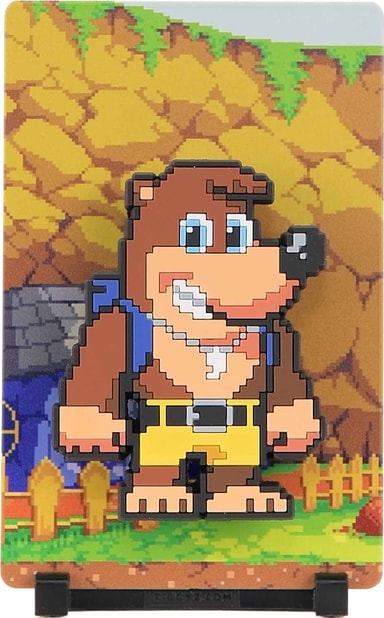 First 4 Figures FiGGYZ Banjo Kazooie -hahmomagneetti sisältää käännettävän metallisen takalevyn, joka tarjoaa kaksi esillepanovaihtoehtoa, pikselitaidetyylisen hahmon, 3D-pop-out-efektin, esillepanopohjan ja magneettisen tarran.Tutustu ominaisuuksiin
