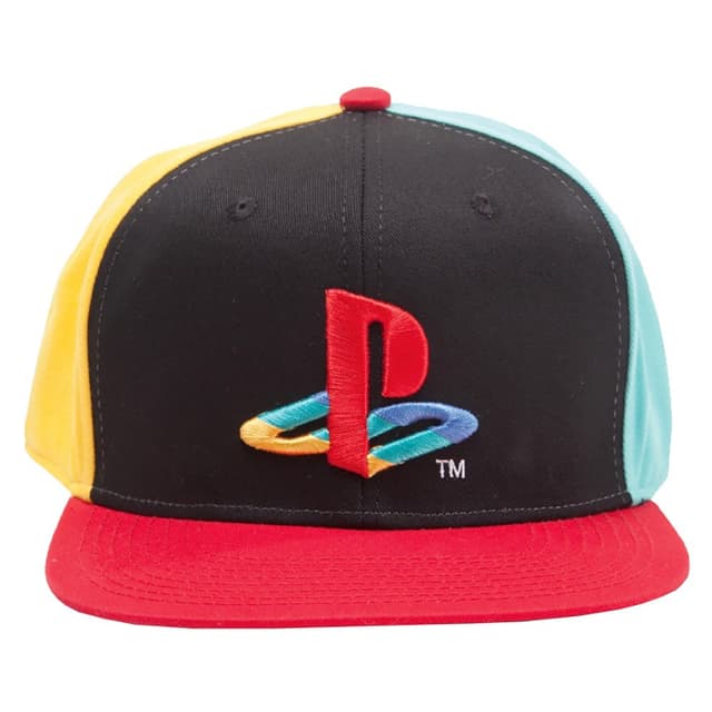 Monivärinen lippalakki, jossa alkuperäinen PlayStation-logo. 100-prosenttista puuvillaa, säädettävä koko.