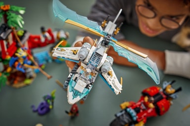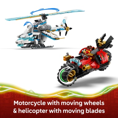 • Sisältää 2 NINJAGO-ajoneuvoa: moottoripyörän ja helikopterin