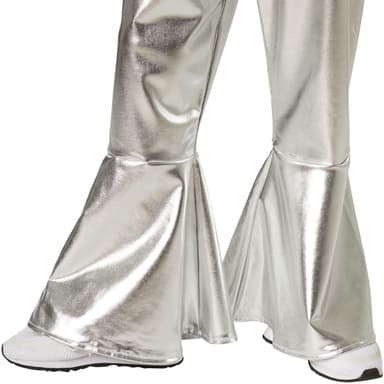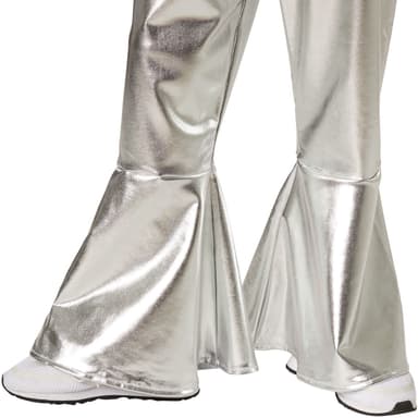 Tämä poikien disco-poikapuku on valmistettu kiiltävästä kaksivärisestä kankaasta. Sinisessä yläosassa on syvällä kaula-aukolla hopeinen reunus ja pystykaulus. Hihansuissa on kaksirivinen hopeinen reunus. Puserossa on edessä halkio.
