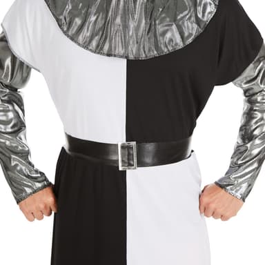 Tämä miesten keskiaikainen ritariasu koostuu pitkästä viitasta. Lisäksi siihen kuuluu pitkähihainen toppi, jossa on metallitehosteiset hihat, hupullinen metallitehosteinen viitta ja vyö.Tutustu ominaisuuksiin