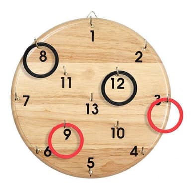 Säkrare än pil och alla kan vara med, stora som små!Ett enkelt och kul familjespel som fungerar lika bra inomhus som utomhus.Med en simpel hänganordning sätts speltavlan enkelt upp på väggen och du kastar de mjuka ofarliga gummiringarna mot tavlan oc