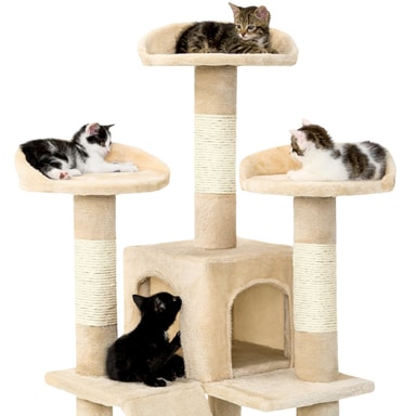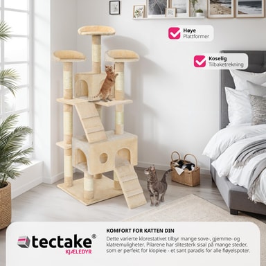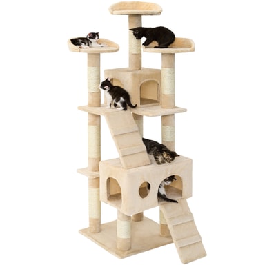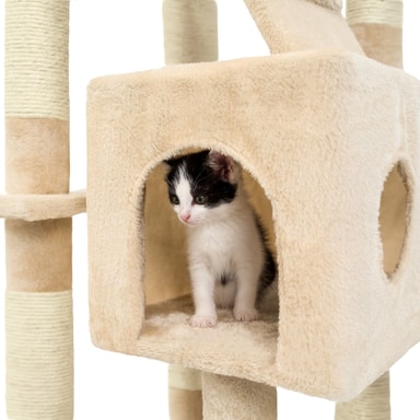 Kissapuu on täydellinen aktiviteettikeskus, jossa kissasi tai kissanpentusi voi leikkiä ja nauttia. Lukuisat raapimispylväät eri tasoilla antavat kissallesi mahdollisuuden poistaa vanhoja tupia ja teroittaa kynsiään aiheuttamatta vahinkoa huonekaluillesi. Kissapuu on kuitenkin paljon muutakin kuin pelkkä raapimispuu. Se sisältää lukuisia muita erilaisia elementtejä, kuten korotettuja alustoja, joille kissat voivat kiivetä ja joiden välillä ne voivat hypätä. Sisäänrakennetuilla lelurampeilla voi leikkiä, ja pienissä taloissa lemmikkisi voi piiloutua ja nukkua päiväunia. Kissapuu saa paljon käyttöä, ja se sopii erinomaisesti kenen tahansa kissanomistajan kotiin.