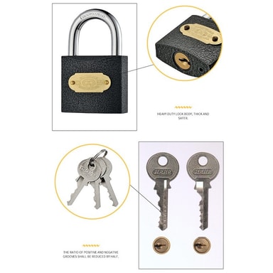 Enhanced Home Security: Tämä 50 mm:n rautalukko tarjoaa vankan turvaratkaisun kotiisi, autotalliisi, vajaasi tai mihin tahansa muuhun suojausta vaativaan tilaan. Sen vankka rautarakenne ja yhden avaimen avausmekanismi tarjoavat luotettavan suojan luvatonta pääsyä vastaan, mikä takaa mielenrauhan. Ihanteellinen porttien, kaappien ja varastoyksiköiden lukitsemiseen, tämä lukko on monipuolinen lisä turvatoimiisi. Musta viimeistely lisää hienovaraisuutta, sulautuen saumattomasti eri ympäristöihin ja tarjoten samalla vahvan visuaalisen pelotevaikutuksen. Sen kompakti koko tekee siitä helpon käsitellä ja säilyttää, kun taas sen vankka rakenne takaa pitkäaikaisen suorituskyvyn.
