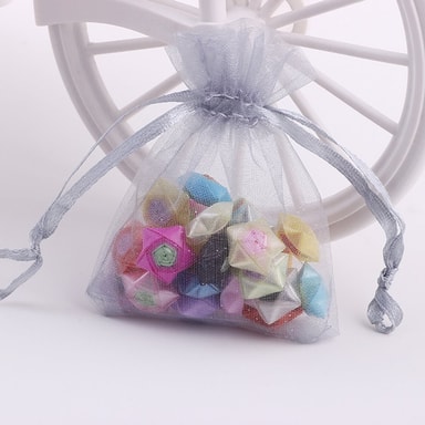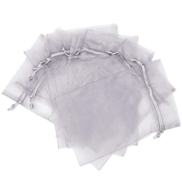 Siistit pienet organza-laukut kiristysnyörillä ja nyörillä. Voidaan avata ja sulkea yhä uudelleen ja pitää sisällön tukevasti paikoillaan. Täydellinen lahjapussiksi tai säilytyspussiksi.
