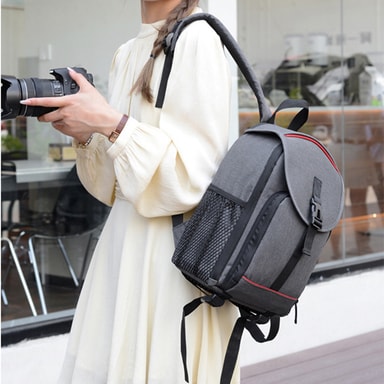 Järjestelmällinen säilytysratkaisu: Useat lokerot ja taskut tarjoavat omat paikkansa kamerarungolle, objektiiveille, iPadille, puhelimelle, muistikorteille ja muille tärkeille tavaroille, pitäen kaiken siististi järjestyksessä ja helposti saatavilla.