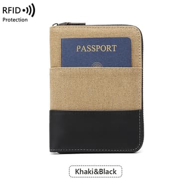 RFID-suojauksella varustettu passipidike ja matkalompakko Khaki + musta