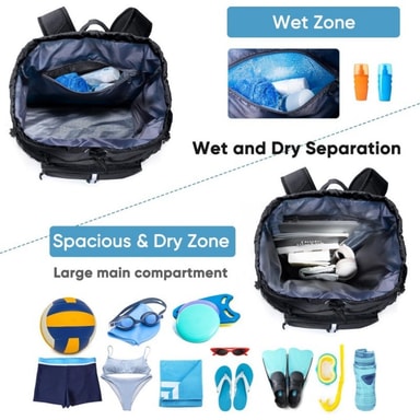 Tilava päätasku: Repussa on runsaasti tilaa kaikille tärkeille varusteillesi, kuten pyyhkeille, vaatteille, vesipulloille ja urheiluvälineille, sillä sen koko on 13,97 cm x 40 cm x 50 cm.