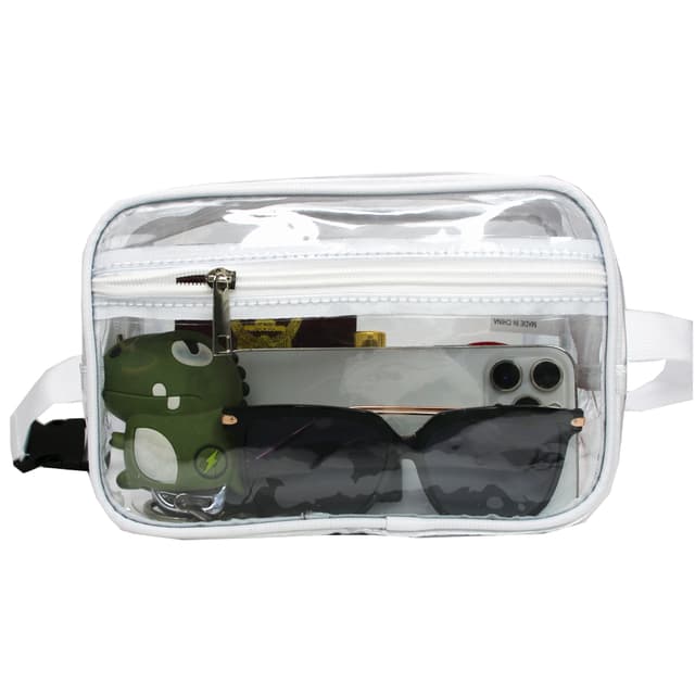 Denna väska är perfekt för aktiva personer som gillar sport och utomhusaktiviteter. Den genomskinliga designen gör att du snabbt kan hitta och komma åt dina väsentliga saker, såsom din telefon, nycklar, plånbok och små tillbehör. Den justerbara remmen säkerställer en bekväm och säker passform, så att du kan fokusera på dina aktiviteter utan att oroa dig för att väskan ska glida eller studsa.