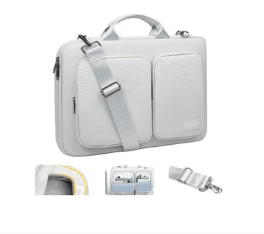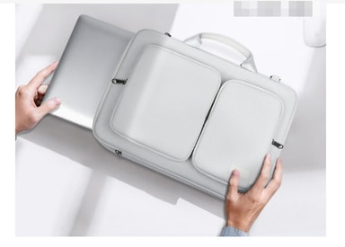 Mukavuus ja käytännöllisyys: Suunniteltu mukavuuttasi ajatellen, tässä läppärilaukussa on mukava olkahihna ja tukeva kahva helppoa kantamista varten. Kevyt muotoilu vähentää rasitusta hartioillesi ja selällesi, mikä tekee siitä ihanteellisen pitkäaikaiseen käyttöön. Laukku tarjoaa myös runsaasti säilytystilaa lisätarvikkeillesi, kuten latureille, kaapeleille ja asiakirjoille, pitäen kaiken järjestyksessä ja helposti saatavilla. Nauti täydellisestä suojan, mukavuuden ja käytännöllisyyden yhdistelmästä tämän tyylikkään läppärilaukun avulla.
