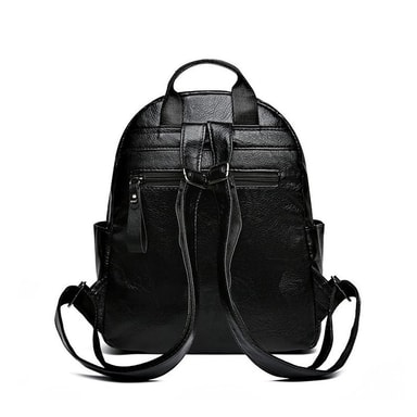 Tässä tyylikkäässä mustassa PU-nahkaisessa repussa on säädettävät olkahihnat, tilava sisätila useilla taskuilla ja se on täydellinen kouluun, töihin tai matkustamiseen. Sen mitat ovat 31 cm x 25 cm x 11 cm.Tutustu ominaisuuksiin
