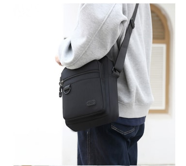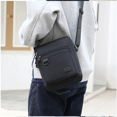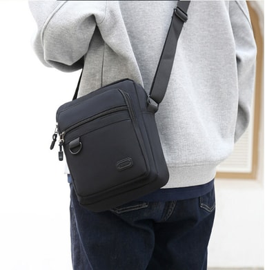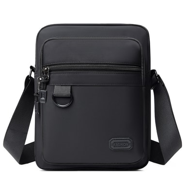 • Tyylikäs Oxford-kangasta oleva pystysuuntainen olkalaukku miehille Musta