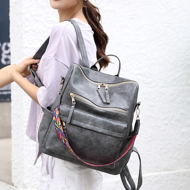 Klassinen ja monipuolinen muotoilu: Tämä vintage-henkinen reppu ylpeilee ajattomalla muotoilulla, joka ylittää ohimenevät trendit, mikä tekee siitä tyylikkään ja käytännöllisen kumppanin vuosiksi eteenpäin. Sen siro siluetti ja neutraali väri sopivat monenlaisiin asuihin, niin rentoihin kuin myös hieman virallisempiin.