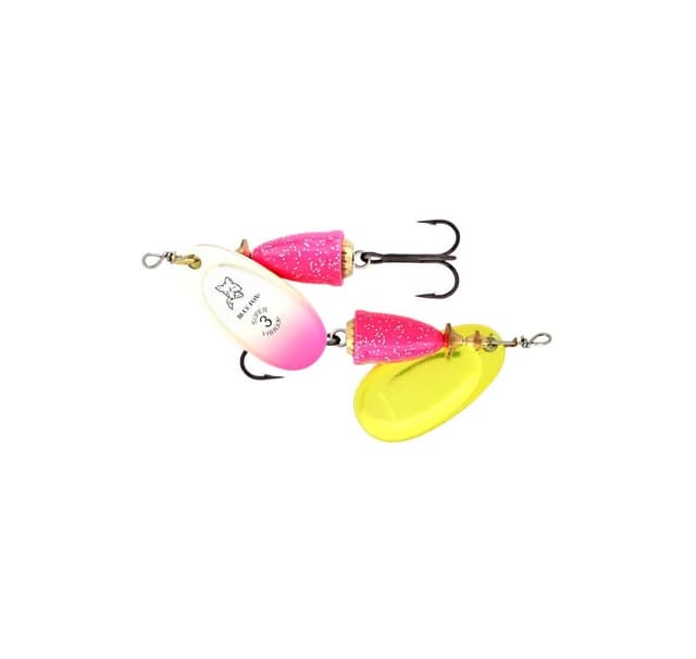 Blue Fox Vibrax Flake - on variantti alkuperäisestä, jonka maalauksessa on hopeahiutaleita, jotka lisäävät näkyvyyttä vedessä.
