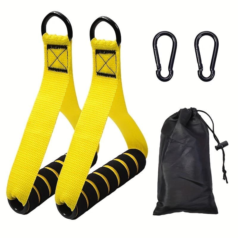 Parannettu otepito: Nauti ylivoimaisesta mukavuudesta harjoitusten aikana näiden kuntoilukahvojen avulla. Ergonominen muotoilu yhdistettynä pehmeään sienipehmusteeseen takaa turvallisen ja mukavan otteen, vähentäen käsien väsymistä ja mahdollistaen keskittymisen oikeaan tekniikkaan. Nämä kahvat sopivat täydellisesti intensiivisiin rintalihasten laajennusharjoituksiin ja muihin vastuskuminauhaharjoituksiin, tarjoten tarvitsemasi tuen rajojen ylittämiseen. Korkealaatuiset materiaalit varmistavat, että ne kestävät kovaa käyttöä, tehden niistä luotettavan lisän kotikuntosalilaitteisiisi. Nauti tehokkaammasta ja mukavammasta harjoittelukokemuksesta näiden premium-kuntoilukahvojen avulla. Ne ovat yhteensopivat vastuskuminauhojen kanssa.