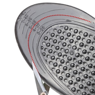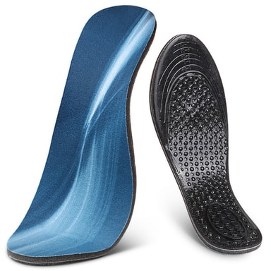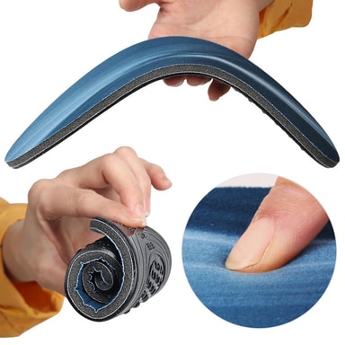 Mukautettava istuvuus: Nämä pohjalliset on helppo leikata sopivan kokoisiksi kenkiisi. Painetut ohjeet varmistavat tarkan leikkauksen, jonka avulla voit muokata istuvuuden maksimaalisen mukavuuden ja tuen saavuttamiseksi.