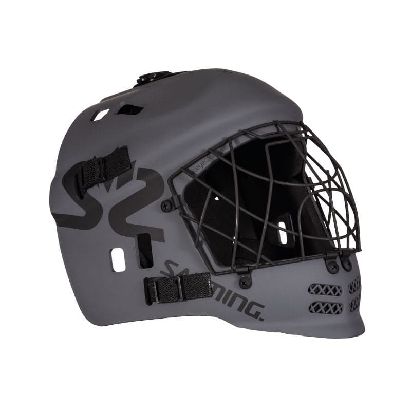 Junior salibandymaalivahdin kypärä ohuella mustalla CatEye-kasvolangalla. Yksi koko.