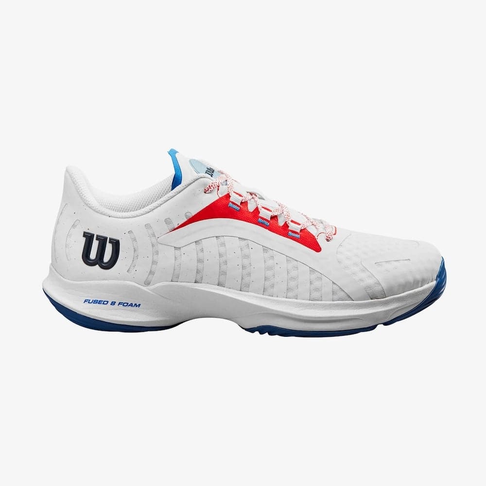 Se, mitä käytät kentällä, vaikuttaa peliisi, ja se vaikuttaa myös planeettaan. Wilsonin Hurakn Pro padel -kenkien kokonaispainosta 21 % on kierrätysmateriaalia. Toinen näiden ympäristöystävällisten kenkien suuri etu on ulkopohja - se on suunniteltu erityisesti padel-kentällä liikkumiseen. Ne on myös viritetty ketteryyteen sisäsukkarakenteella, joka tuntuu tukevalta räjähtäessäsi palloa kohti. Responsiivinen EVA-välipohja pitää sinut raikkaana jaloissasi kolmen sarjan jälkeen