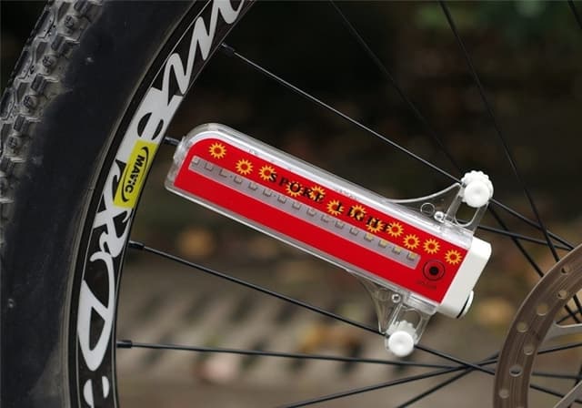 Tämä polkupyörän pyöränvalo koostuu 32 värikkäästä LED-valosta, joissa on 16 LED-valoa kummallakin puolella. 32 erilaista kuvioa vaihtuu joka neljäs sekunti.