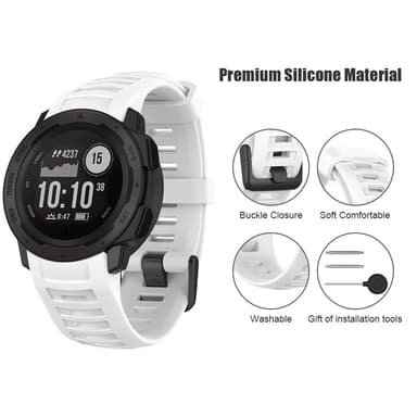 Yhteensopivuus: Tämä Garmin Instinct 2 silikoniranneke on suunniteltu yhteensopivaksi useiden Garmin-mallien kanssa, mukaan lukien Garmin Instinct 2, Garmin Instinct Tide, Garmin Instinct Tactical, Garmin Instinct Dual Power Surf, Garmin Instinct Dual Power ja Garmin Instinct Esports.